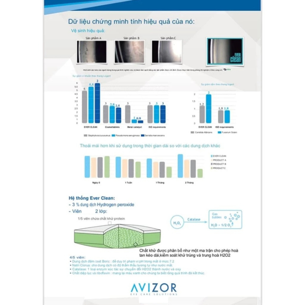 Trong số các sản phẩm làm sạch lens hiện nay, Avizor Ever Clean Plus được đánh giá là dung dịch oxy hóa 2 bước mạnh mẽ – an toàn – tối ưu nhất cho người đeo kính áp tròng thường xuyên, đặc biệt là mắt nhạy cảm.