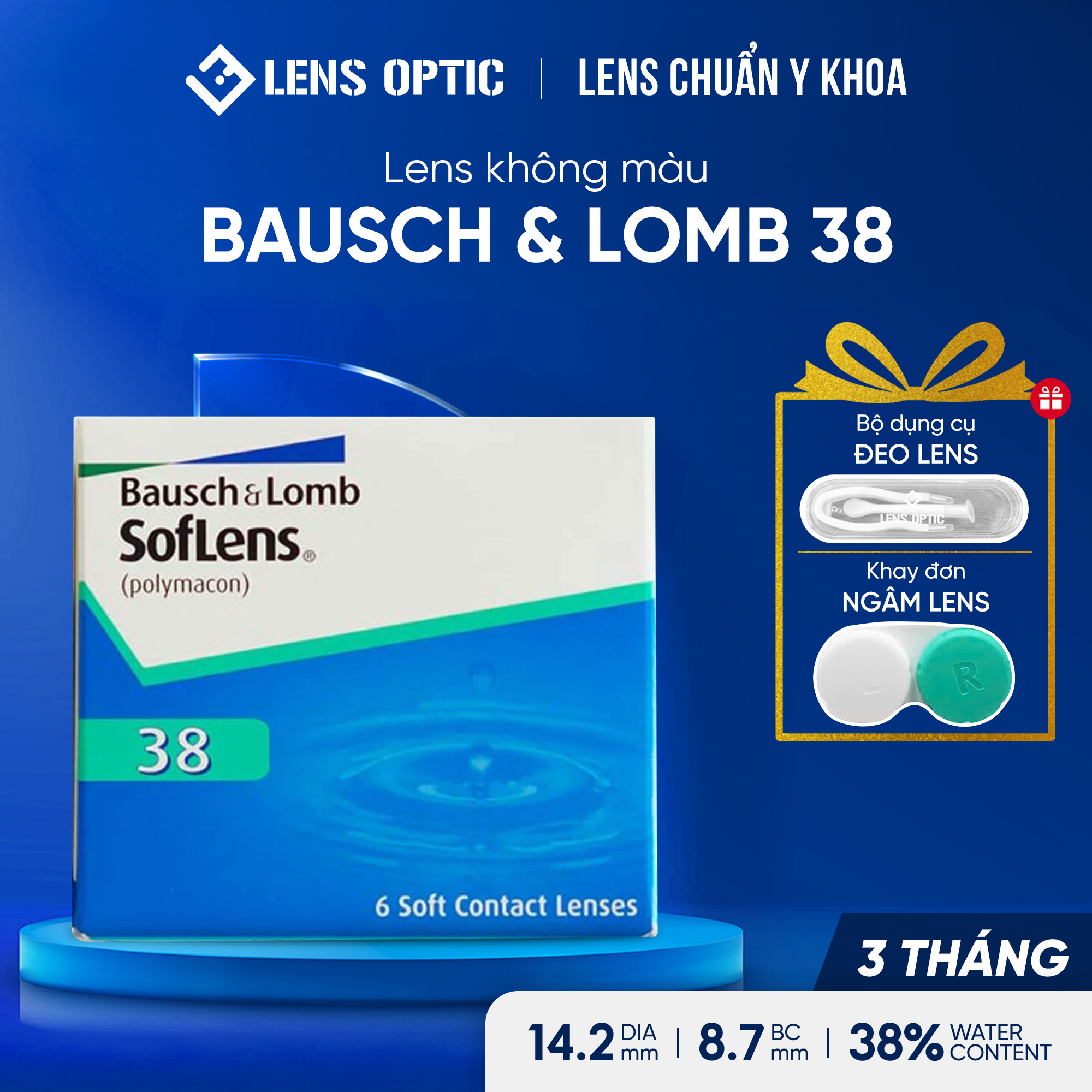 Kính áp tròng Bausch&Lomb dùng 1 tháng không màu, lens mắt trong suốt có độ cận- Lens Optic