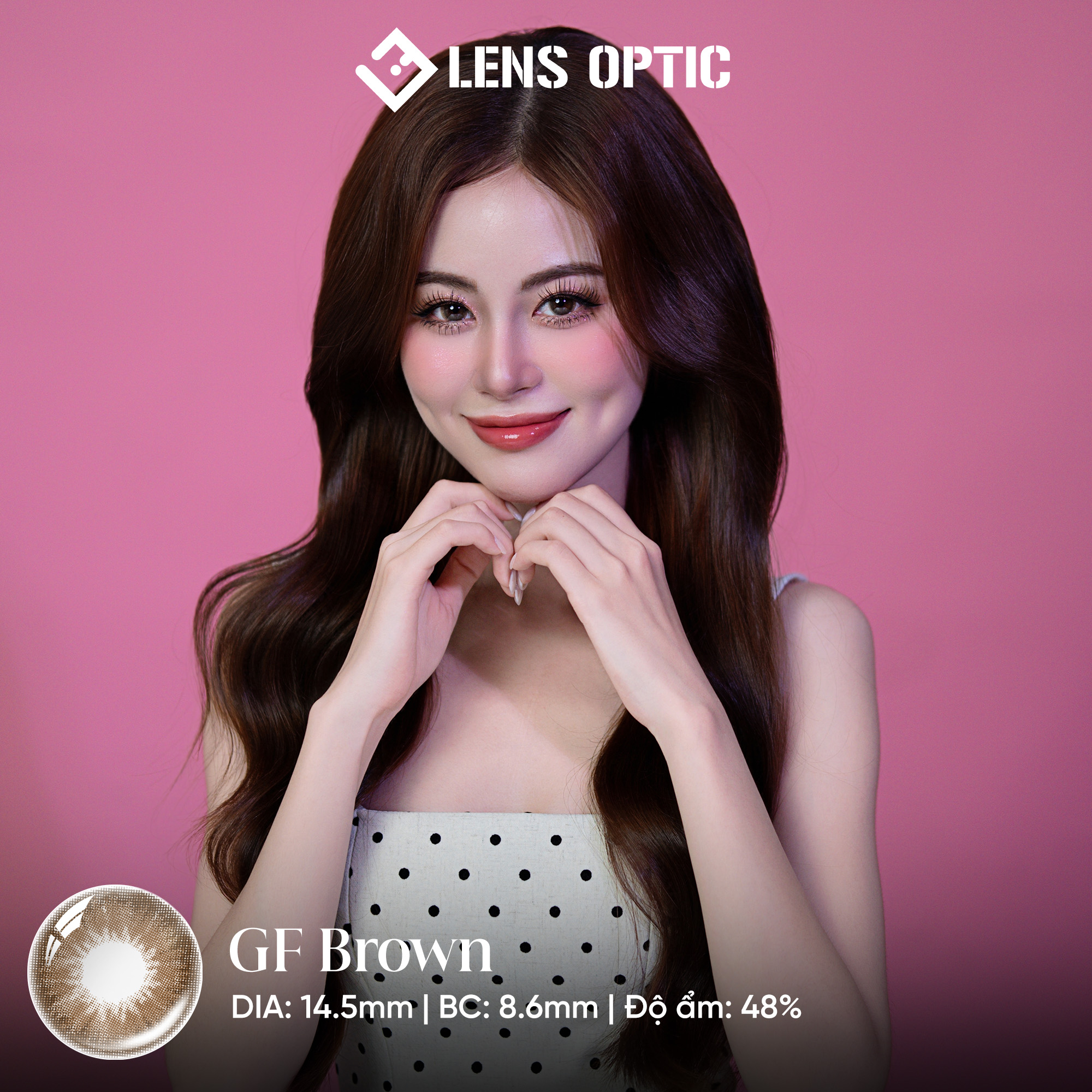 Không phải ngẫu nhiên mà Kính áp tròng 6 tháng màu GF Brown giãn tròng 14.2 luôn nằm trong Top Best-seller tại Lens Optic. Đây được mệnh danh là tone nâu "quốc dân" nhờ khả năng "cân" mọi loại da và phù hợp với hầu hết cấu trúc gương mặt người Á Đông.