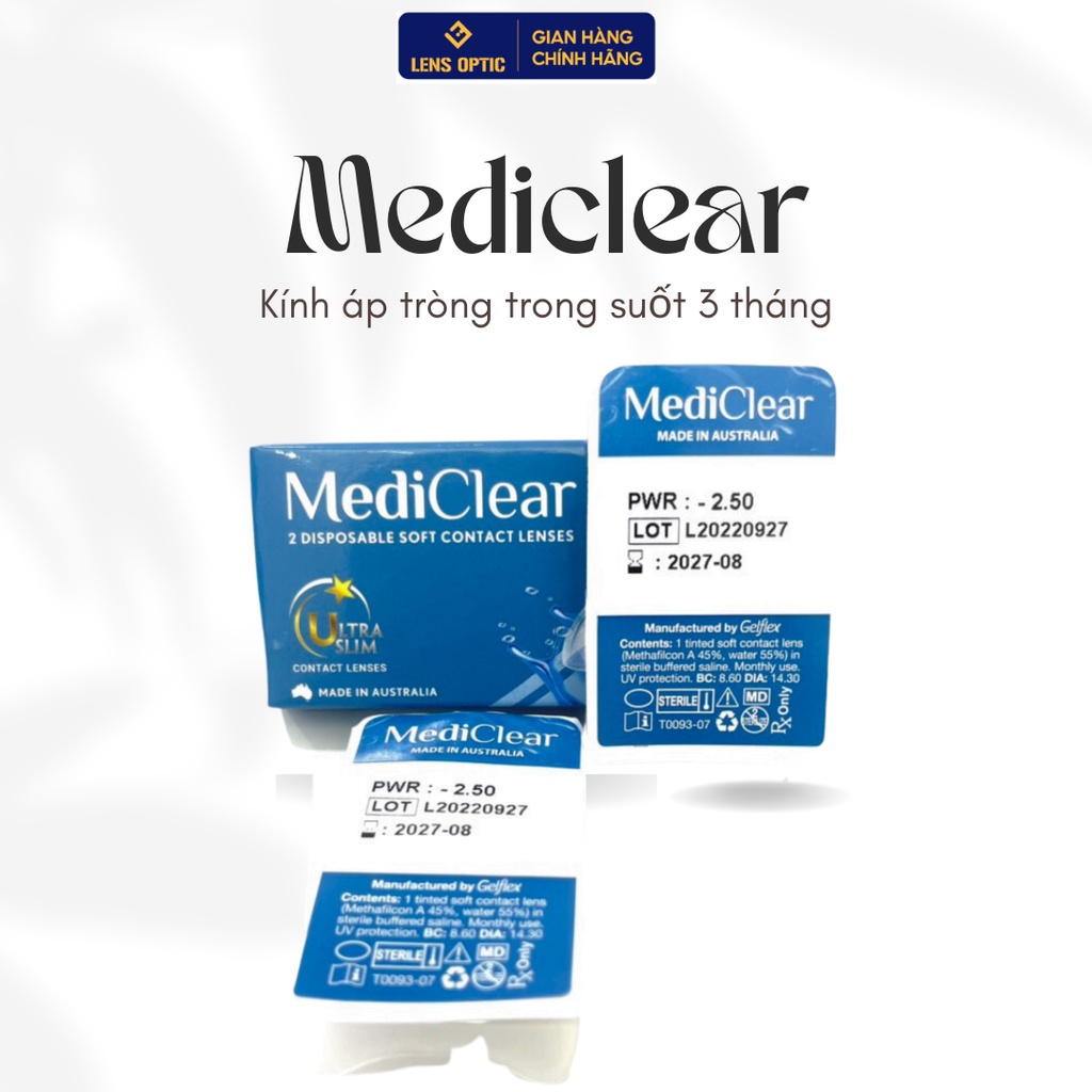 Nếu bạn đang tìm một loại lens tự nhiên tuyệt đối, đeo êm cả ngày, bền 3 tháng và an toàn cho mắt nhạy cảm, thì kính áp tròng trong suốt Mediclear Úc chính là một trong những lựa chọn đáng tin cậy nhất. Lens trong suốt giúp giữ nguyên màu mắt thật, phù hợp đi học – đi làm – giao tiếp hằng ngày mà không ai nhận ra bạn đang đeo lens.