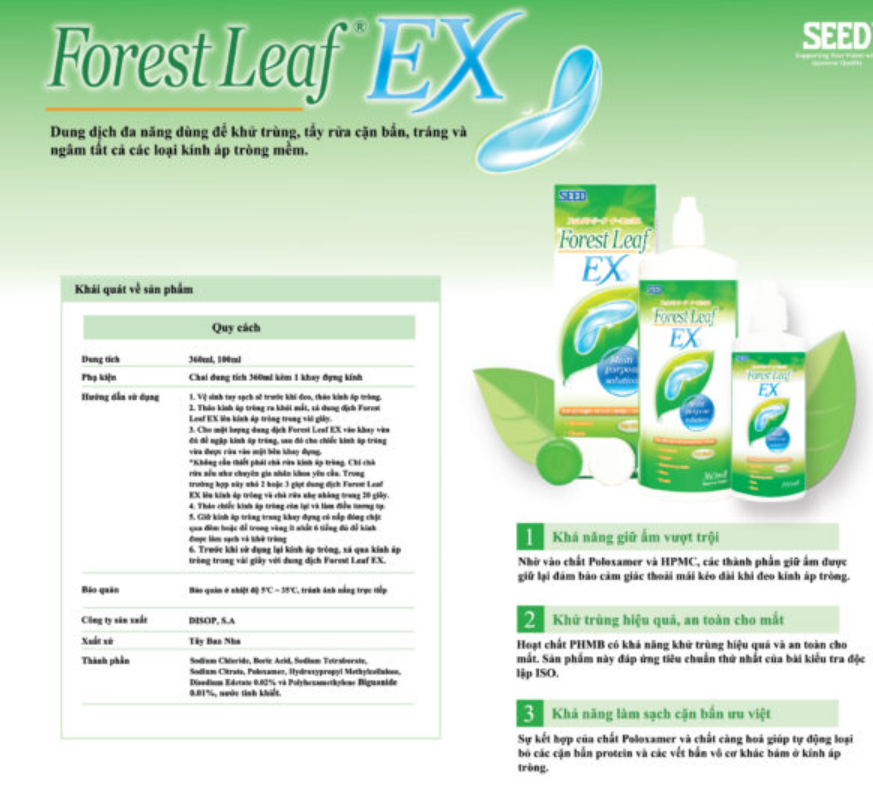 Nước ngâm rửa kính áp tròng Forest Leaf EX 360ml, nước rửa lens cho mắt khô, nhạy cảm * Thông tin sản phẩm: