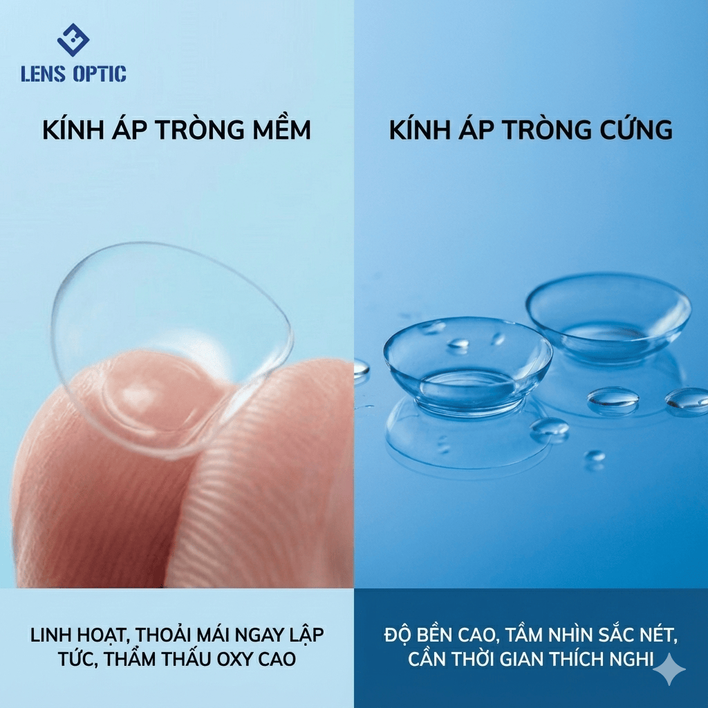So sánh kính áp tròng mềm và kính áp tròng cứng