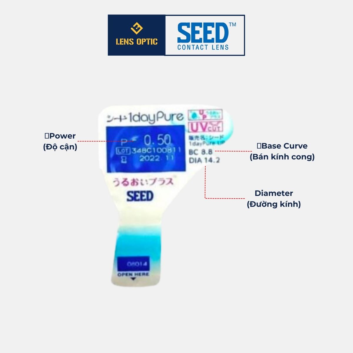 Kính áp tròng SEED 1 ngày không màu, lens SEED 1day Pure trong suốt có độ cận-Lens Optic